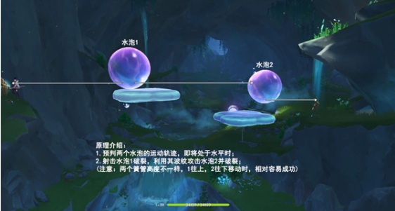 5、面对谐律簧管机关阵列时,重点锁定标注为1号的水元素气泡装置进行精准射击。其他编号装置无需操作,此设计考验玩家对关键节点的识别能力。