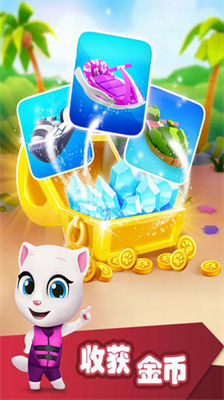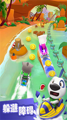 1、全角色自由操控:玩家可任意选择汤姆猫家族成员,每个角色配备专属摩托艇外观与加速特效,通过连续完成特技动作可激活角色隐藏技能。